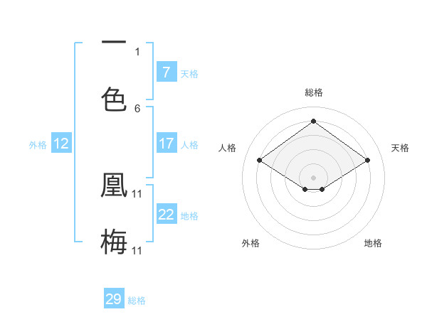 一色 凰梅さんの総格は29画の4点!