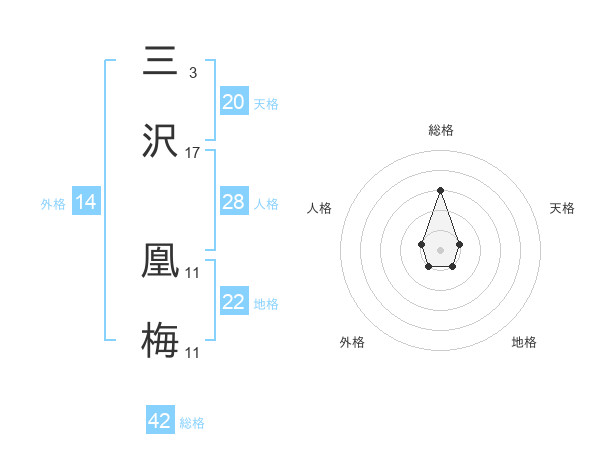三沢 凰梅さんの総格は42画の3点!