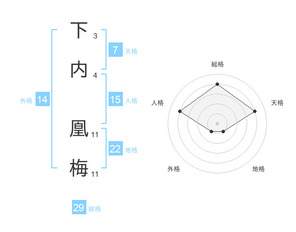 下内 凰梅さんの総格は29画の4点!