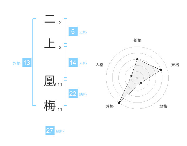 二上 凰梅さんの外格は13画の5点!