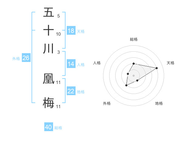 五十川 凰梅さんを姓名の画数から五運を鑑定