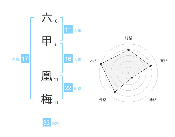 六甲 凰梅さんを姓名の画数から五運を鑑定