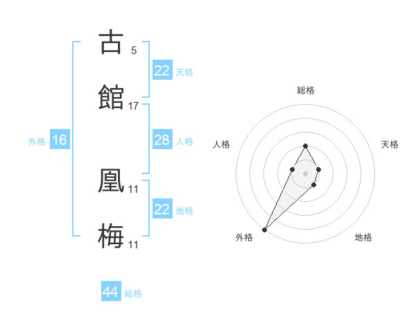 古館 凰梅さんを姓名の画数から五運を鑑定