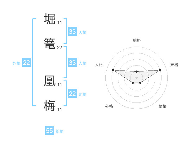 堀篭 凰梅さんの総格は55画の1点!
