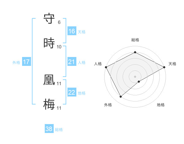 守時 凰梅さんを姓名の画数から五運を鑑定