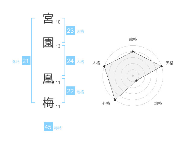 宮園 凰梅さんを姓名の画数から五運を鑑定