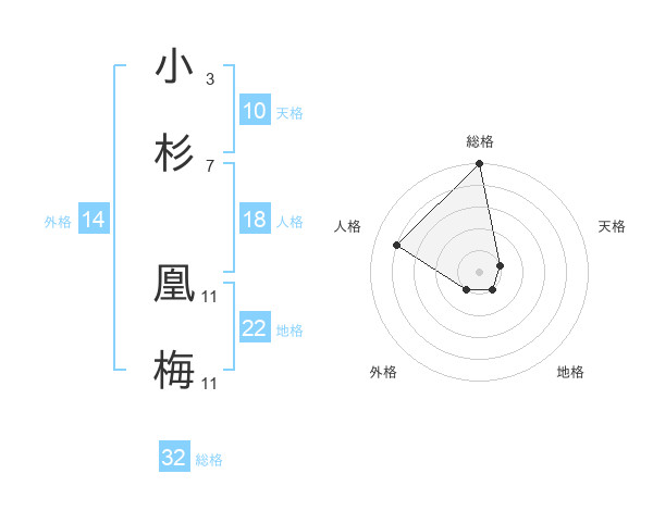 小杉 凰梅さんを姓名の画数から五運を鑑定