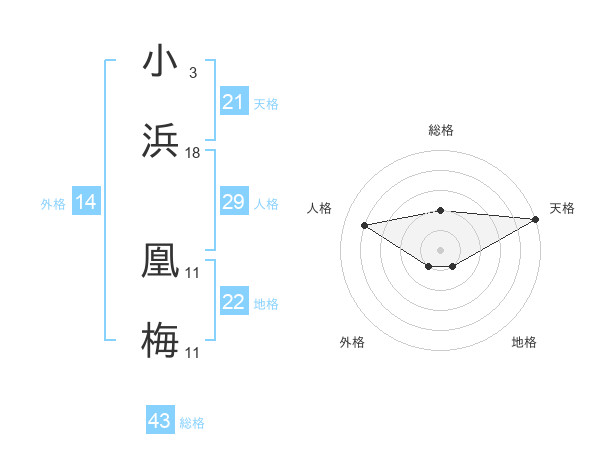 小浜 凰梅さんの天格は21画の5点!