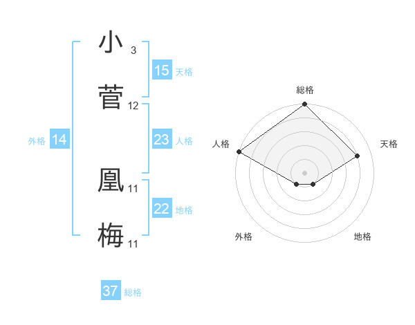 小菅 凰梅さんの総格は37画の5点!