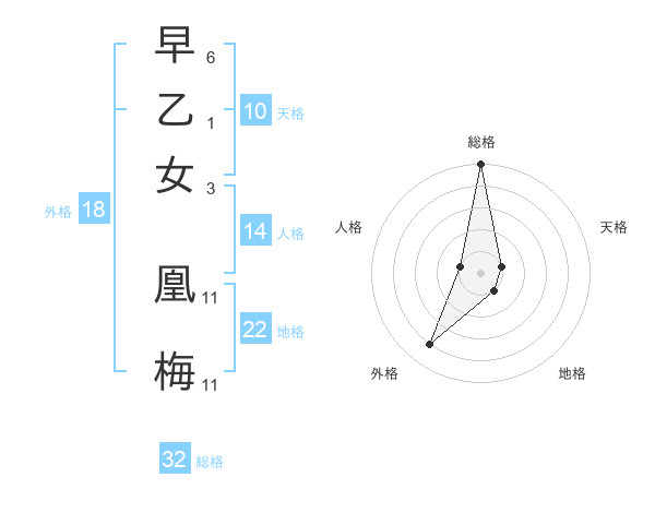 早乙女 凰梅さんを姓名の画数から五運を鑑定