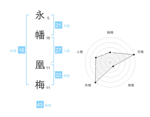 永幡 凰梅さんを姓名の画数から五運を鑑定