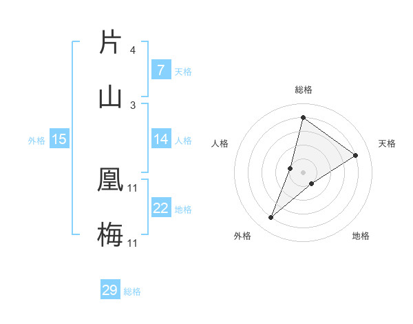 片山 凰梅さんを姓名の画数から五運を鑑定