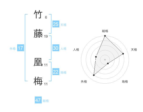 竹藤 凰梅さんを姓名の画数から五運を鑑定