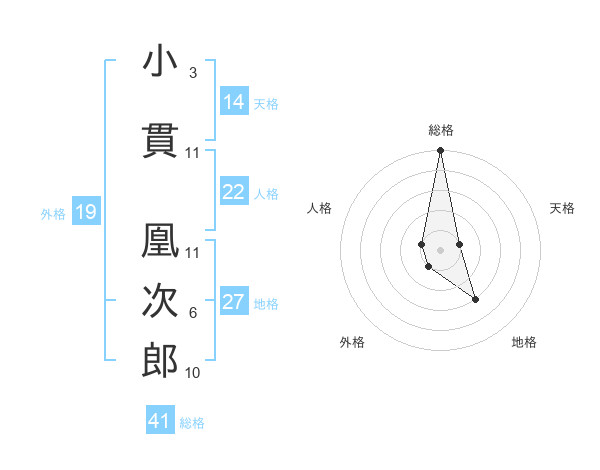 小貫 凰次郎さんの総格は41画の5点!