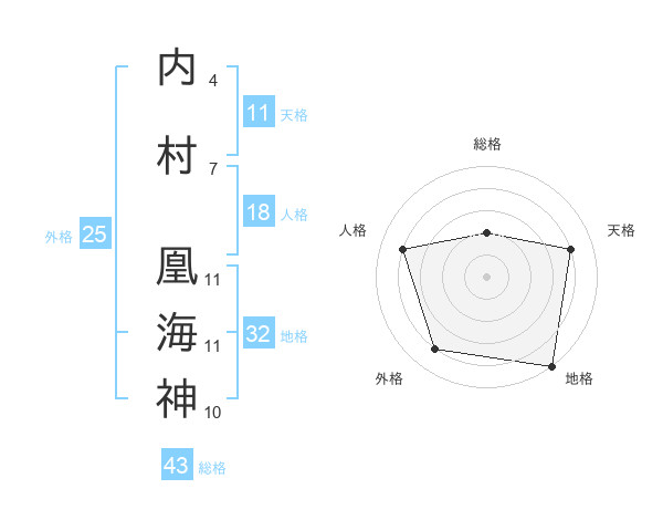 内村 凰海神さんを姓名の画数から五運を鑑定
