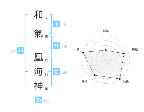 和氣 凰海神さんを姓名の画数から五運を鑑定