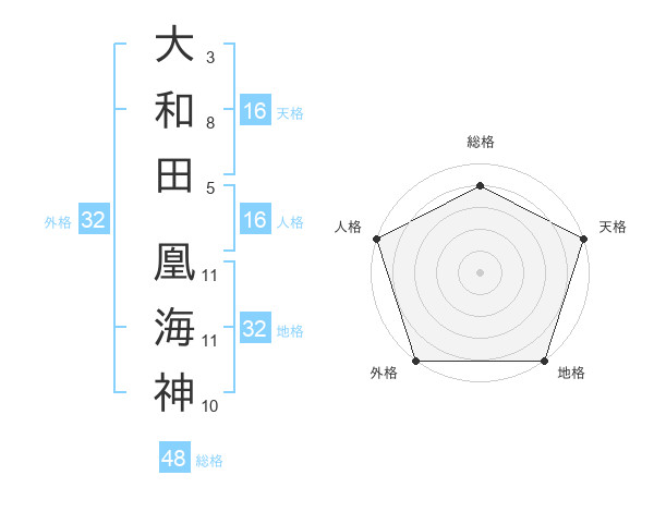 大和田 凰海神さんの外格は32画の5点!