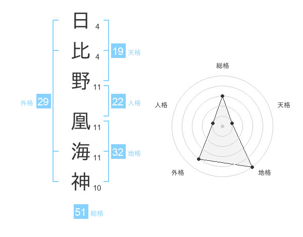 日比野 凰海神さんを姓名の画数から五運を鑑定