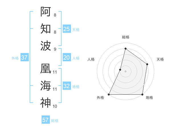 阿知波 凰海神さんを姓名の画数から五運を鑑定