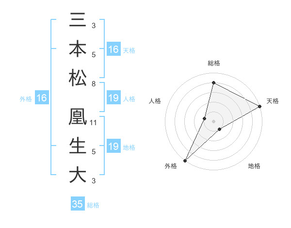 三本松 凰生大さんを姓名の画数から五運を鑑定
