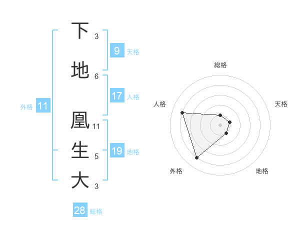 下地 凰生大さんを姓名の画数から五運を鑑定