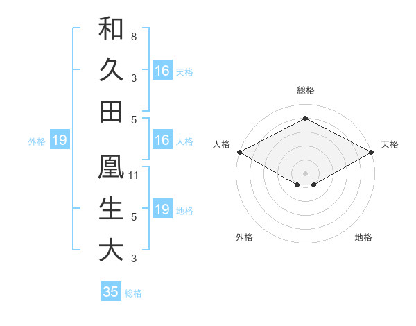 和久田 凰生大さんを姓名の画数から五運を鑑定