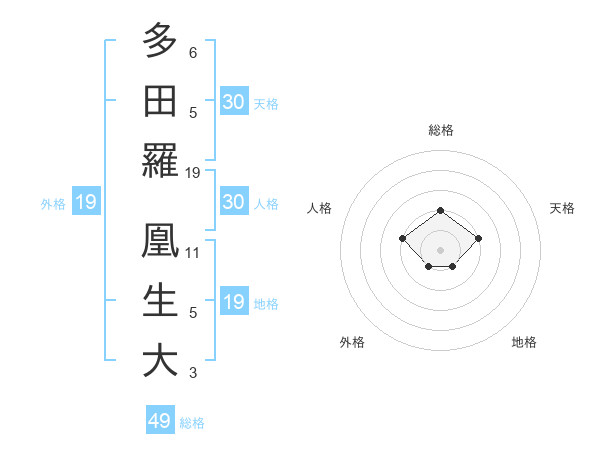 多田羅 凰生大さんの総格は49画の2点!
