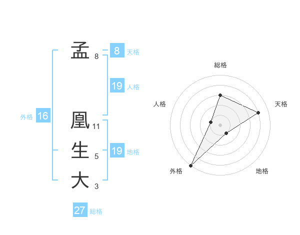 孟 凰生大さんを姓名の画数から五運を鑑定