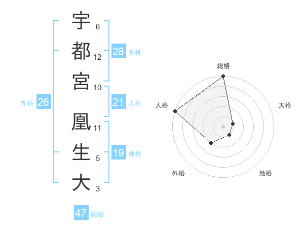 宇都宮 凰生大さんを姓名の画数から五運を鑑定
