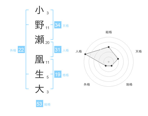小野瀬 凰生大さんを姓名の画数から五運を鑑定