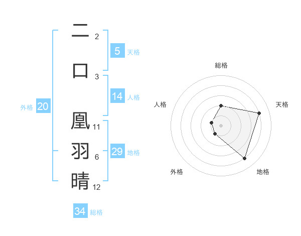 二口 凰羽晴さんを姓名の画数から五運を鑑定