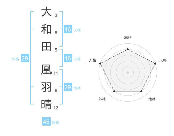 大和田 凰羽晴さんを姓名の画数から五運を鑑定