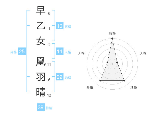 早乙女 凰羽晴さんの総格は39画の5点!