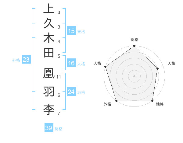 上久木田 凰羽李さんを姓名の画数から五運を鑑定