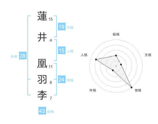 蓮井 凰羽李さんを姓名の画数から五運を鑑定