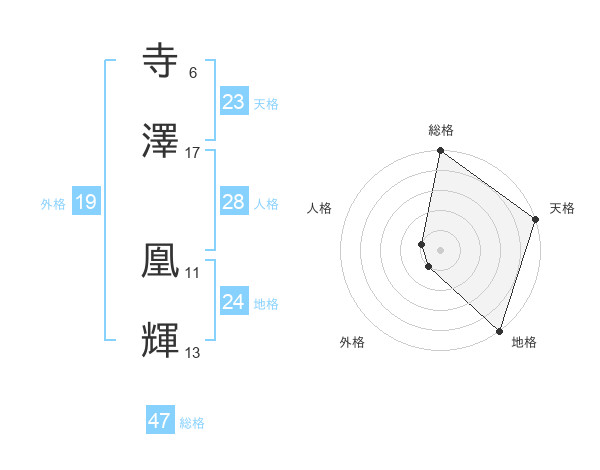 寺澤 凰輝さんの総格は47画の5点!