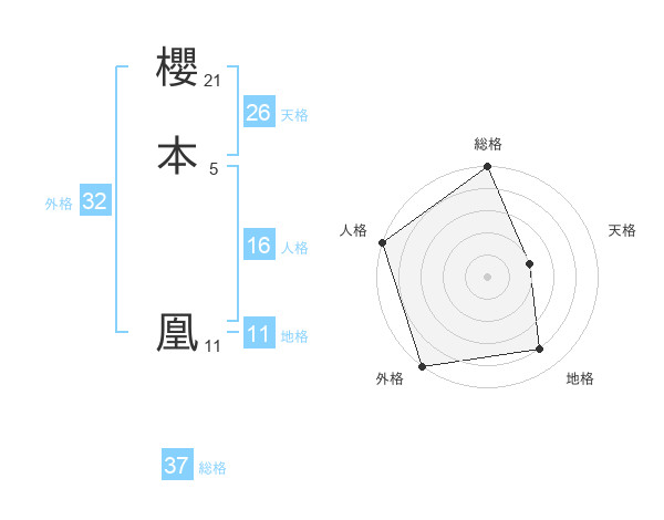 櫻本 凰さんの総格は37画の5点!