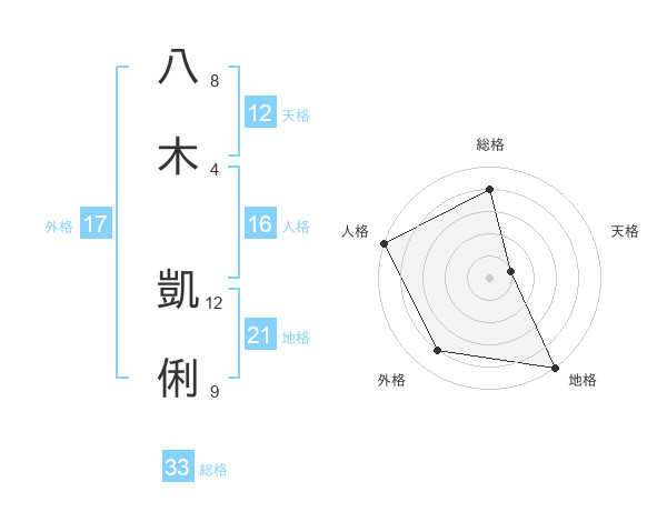八木 凱俐さんを姓名の画数から五運を鑑定