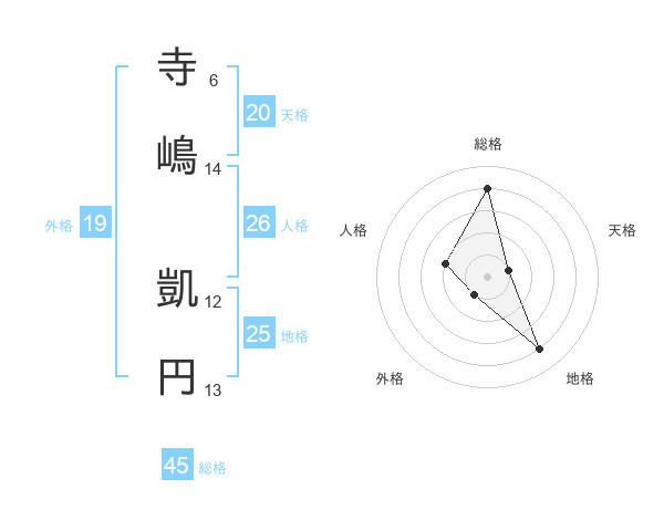 寺嶋 凱円さんの総格は45画の4点!