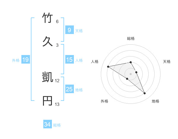 竹久 凱円さんを姓名の画数から五運を鑑定