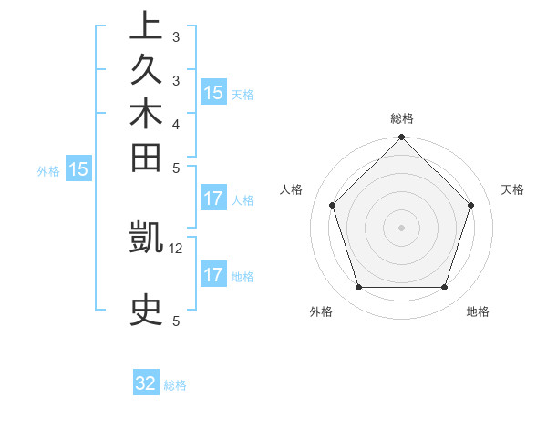 上久木田 凱史さんを姓名の画数から五運を鑑定