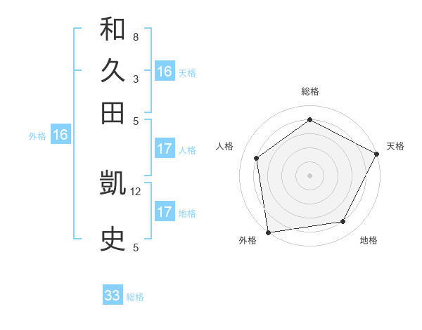 和久田 凱史さんを姓名の画数から五運を鑑定