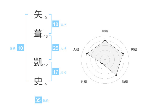 矢葺 凱史さんを姓名の画数から五運を鑑定