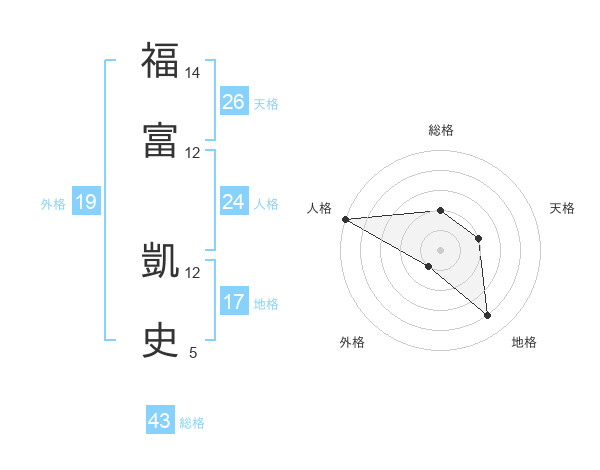 福富 凱史さんの総格は43画の2点!