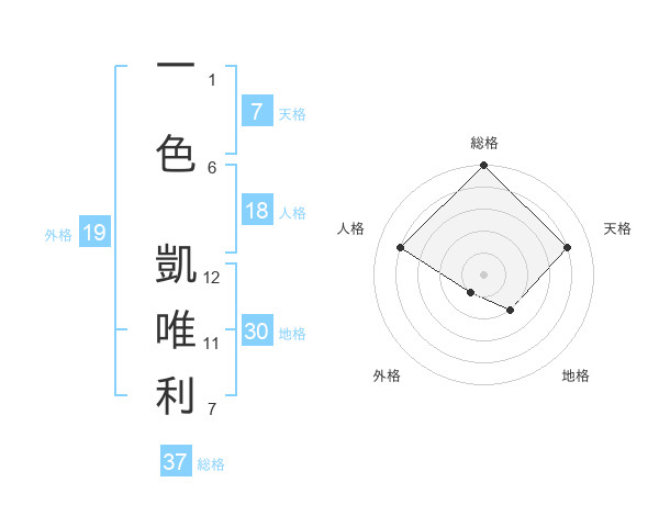 一色 凱唯利さんを姓名の画数から五運を鑑定