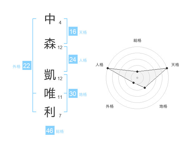 中森 凱唯利さんを姓名の画数から五運を鑑定