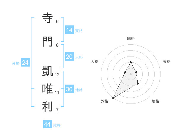 寺門 凱唯利さんの総格は44画の2点!