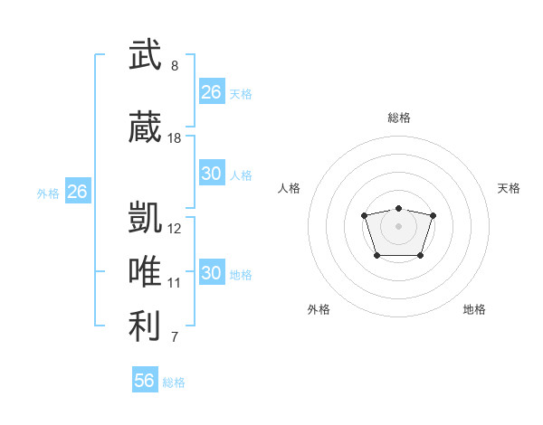 武蔵 凱唯利さんを姓名の画数から五運を鑑定