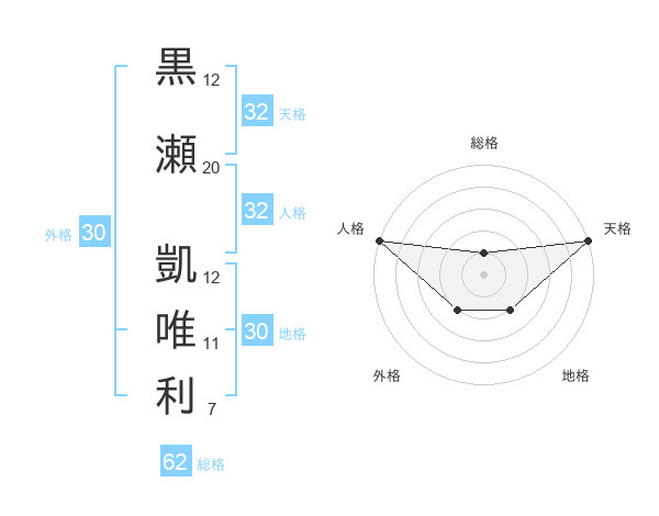 黒瀬 凱唯利さんを姓名の画数から五運を鑑定