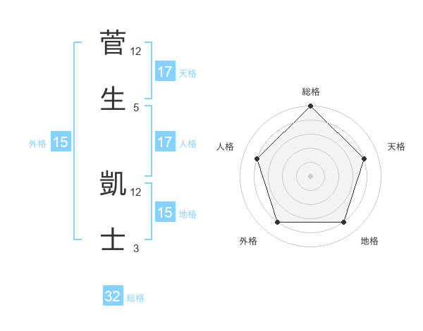 菅生 凱士さんを姓名の画数から五運を鑑定